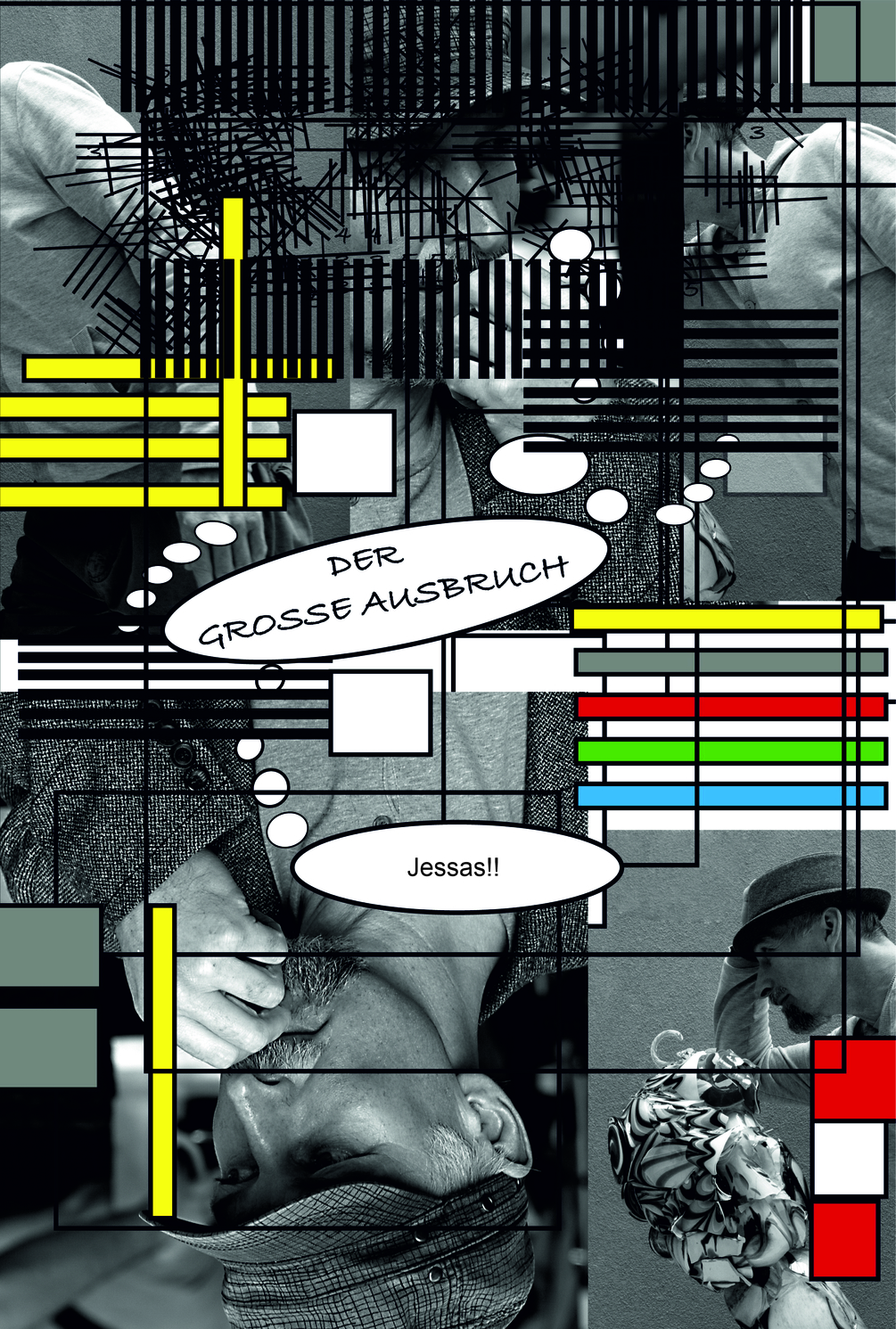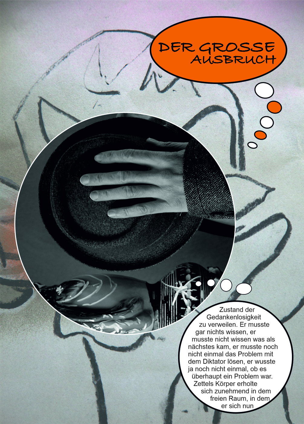 Der Text in Der große Ausbruch beschreibt die Transformation des Protagonisten Vinzent Zettel. Die Kunst und das Leben führen Zettel aus seinem normalen Dasein, dass er zunehmend wie ein Gefängnis empfindet, hin zu innerer Freiheit. Dieser spektakuläre große Ausbruch und Zettels Ankommen in einem neuen, inneren Land wird begleitet von Bildern und Skulpturen des bildenden Künstlers Briant Rokyta, fotografiert wurden die Werke von Renée Kellner. Das Buch hat zwei Anfänge, also auch zwei Cover: Es beginnt auf der einen Seite mit deutschen Text und Skulpturen. Dreht man das Buch auf den Kopf, fängt man auf der anderen Seite - beim zweiten Cover - mit der englischen Version und Malereien an. In der Mitte des Buches begegnen sich die beiden Enden.